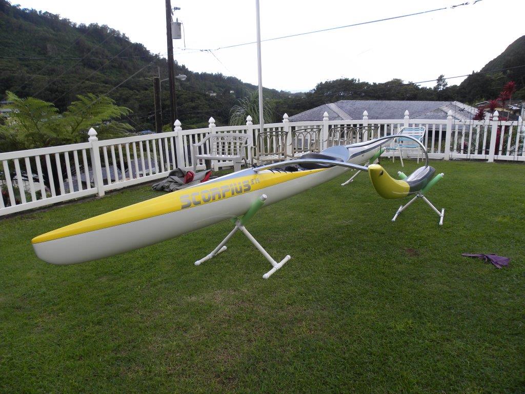 Clear Maui built Scorpius XM (no extension). Light and water tight, still in excellent condition, picture taken today (not a photo of the canoe a year ago). $3200 OBO, will negotiate