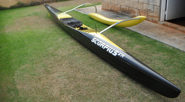 Composite hybrid of fiberglass, carbon fiber, and Kevlar / Vacuum infused, heat-cured epoxy / Black bow & stern. Also included is a full carbon mid wing Epic paddle. Price for everything is 2,250. Email me for pics.