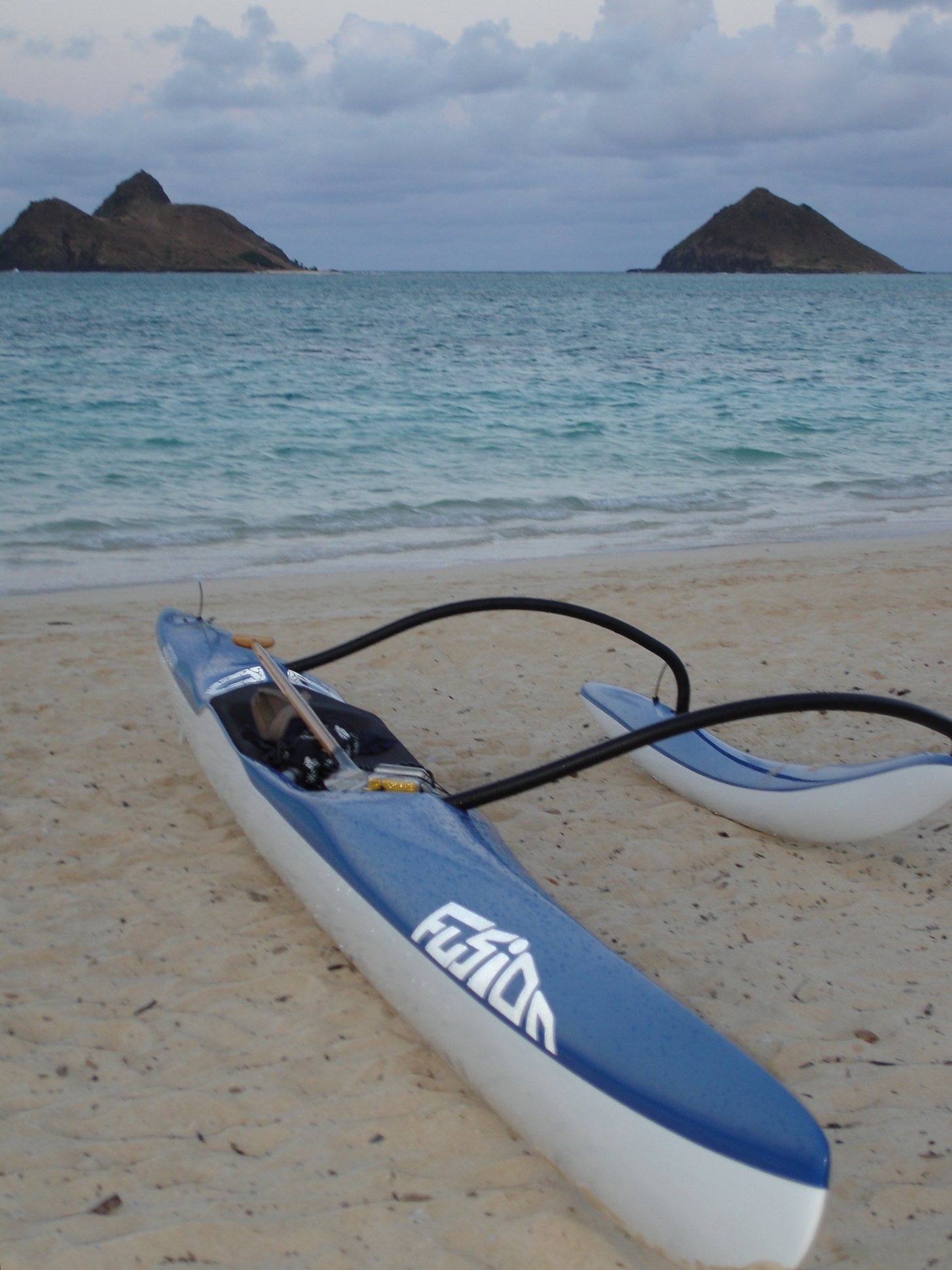 Boat did the solo in 2009 and the Kanaka Race today 2/28. Good shape. Blue over white. Only $2000 based on two surgeries -- work done by Paul Gaye. Getting new canoe--need to clear space. Make an offer!