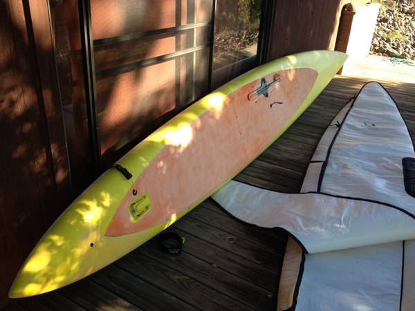 Older model F16 downwind board. A few repairs. Hollow core. Steering for regular da kinders. Comes with Da Kine bag. $1300 OBO