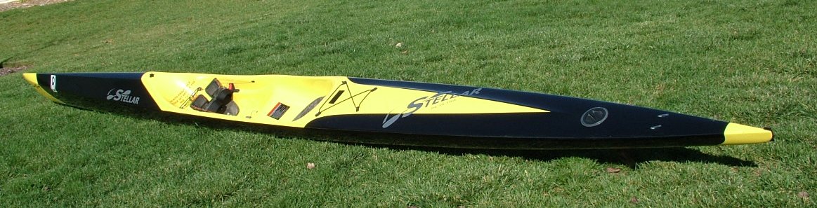 Stellar SE Ultra all-carbon surf ski for sale, 21’6? x 17.5?, 24 lbs. Extended foot straps to allow boots for winter paddling. Van Dusen over-stern kick-up rudder as well as understern surf rudder for shallow-water running or big-water fun in the waves. Retrofitted with Q-Power Spectra rudder line. Bullet-style bailer & plug. With cover. Beautiful boat in great shape. Some light scratches in the finish on the bottom of the boat. $2900. Photos are available. Would consider working a trade on a Storm OC-1 or other performance OC-1.