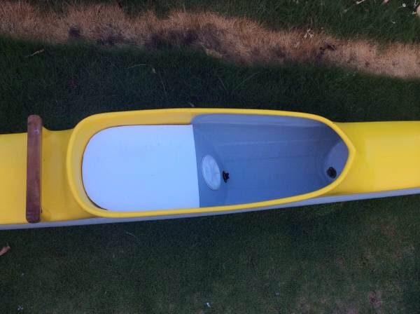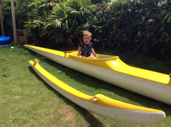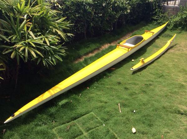 Rudderless One-man. This va'a is cherry! Barely used then stored in the dark for years. (after the iakos broke and disappeared- so those aren't included)
