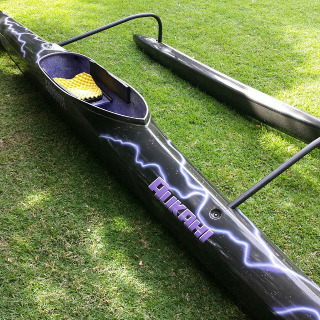 aukahi rudderless canoe,very fancy, triple 3.9 carbon,all clear carbon ama and canoe,airbrush lightning effect.19,5 lbs with adjustable footbrace and seat,one of a kind!! $5600 obo #8082771236
