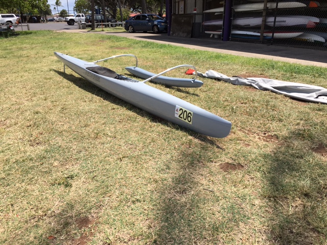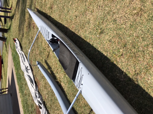 Double Carbon. Hull used very little. Stored in canoe bag. Ama is several months old, as it was used on a xm canoe. Selling because I have no time to use, and I do not want it to sit unused.