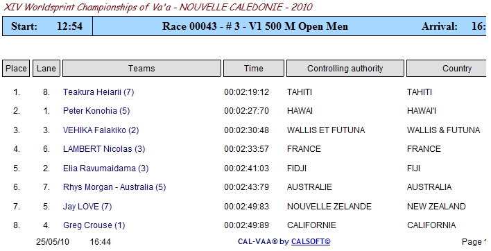 Below are Heats, semis, and final results for Hawaii Entries Only ...