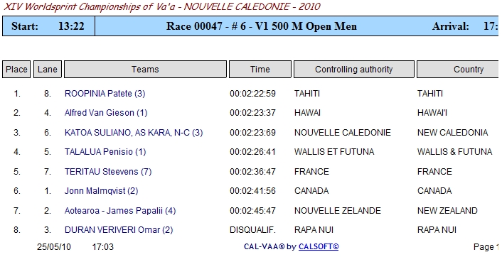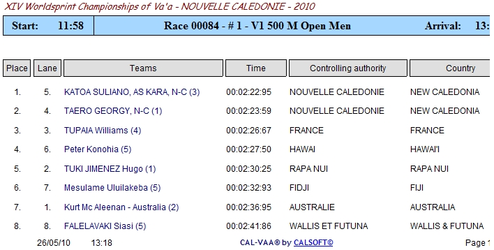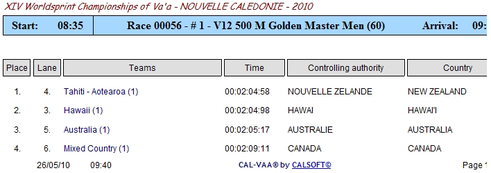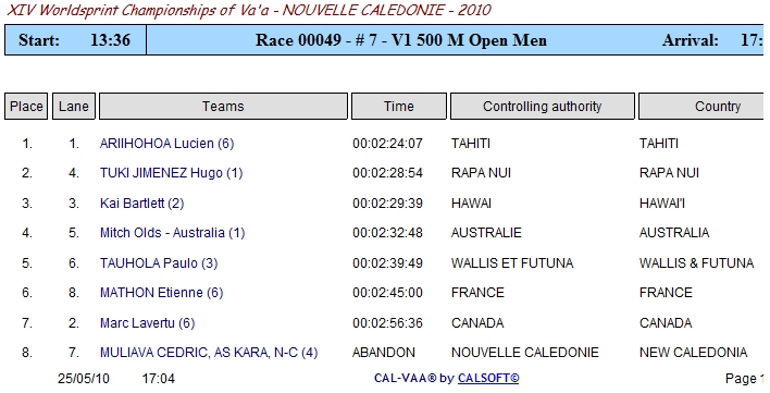 Anybody know of a link to the results for the IVF Sprints currently being held in New Caledonia?