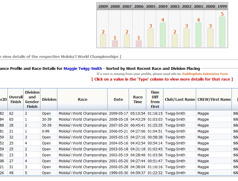 The sites very basic but it provides race performance summaries and other related information in a snapshot...