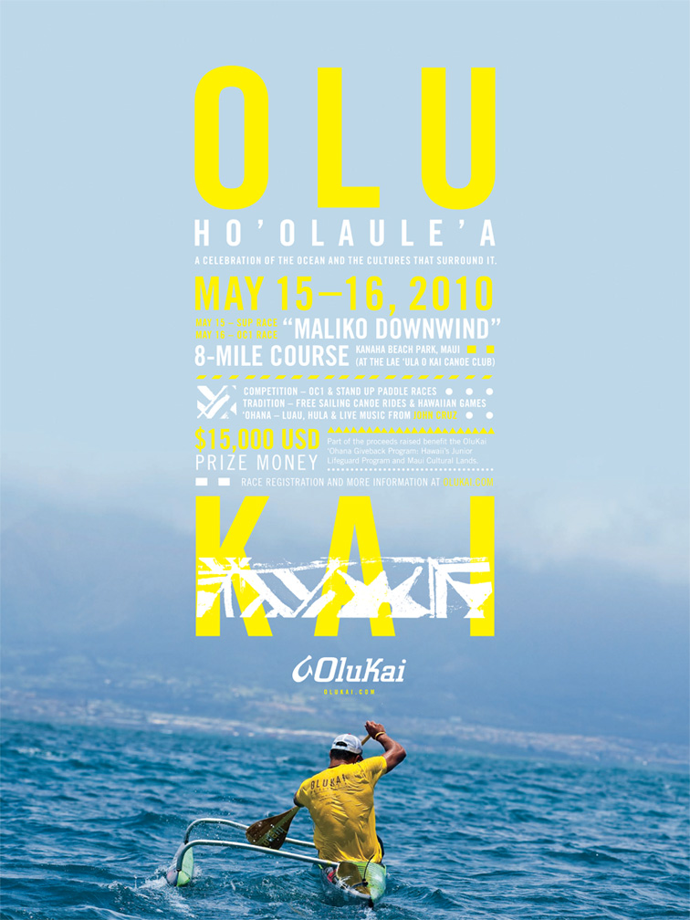 Alternately to online registration, stop by Neil Pryde Maui on Saturday, May 1st for the OluKai Ho’olaule’a Pre-Sign Up Party. Maui residents and paddlers can sign up for the SUP and OC1 races, buy luau dinner tickets and preview OluKai’s spring line from noon to 5:00PM.