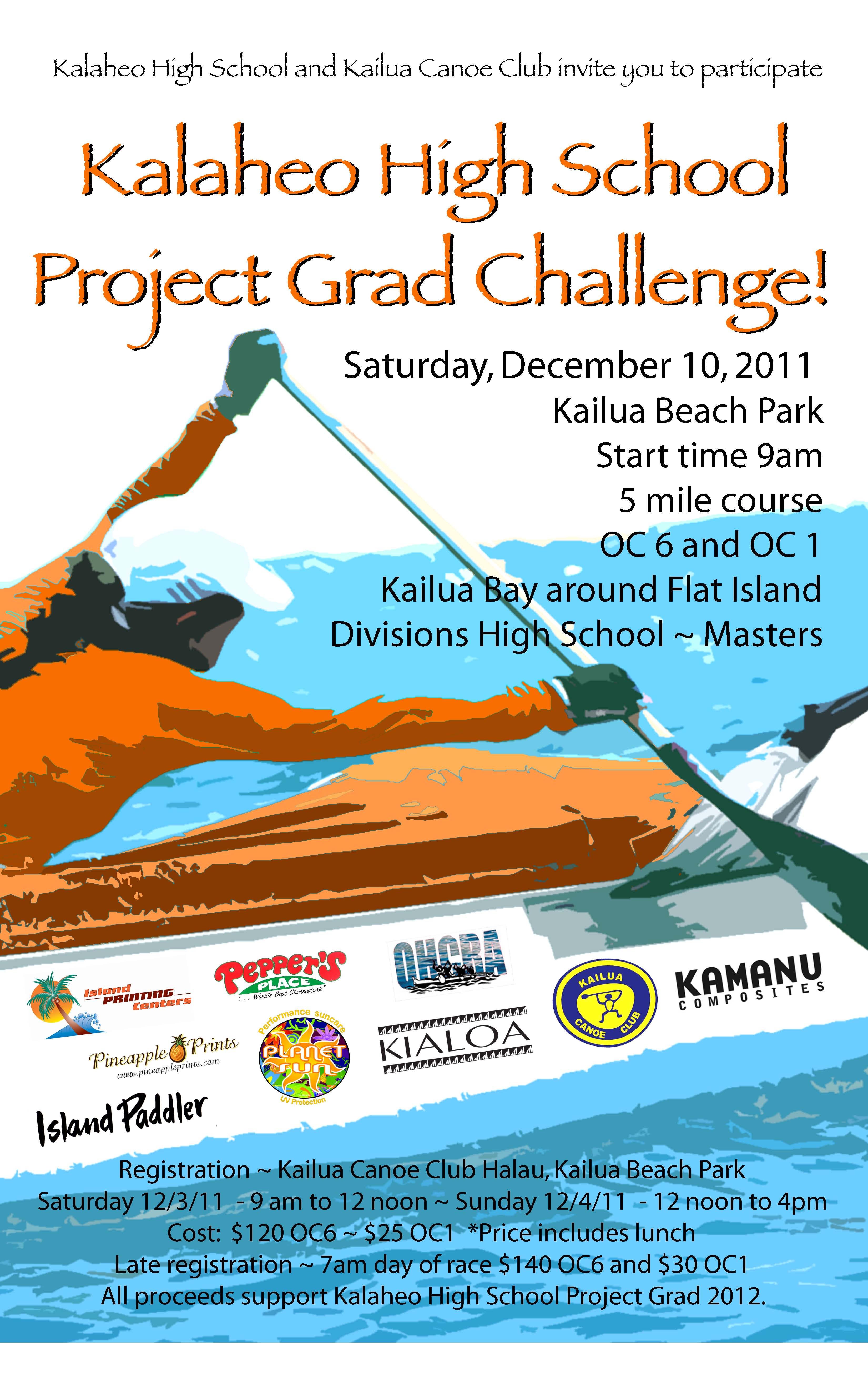 No forget to check out the Kalaheo Project Grad Fundraiser Race on Saturday December 10th. Registration is at 7am Kailua Canoe Club Halau.