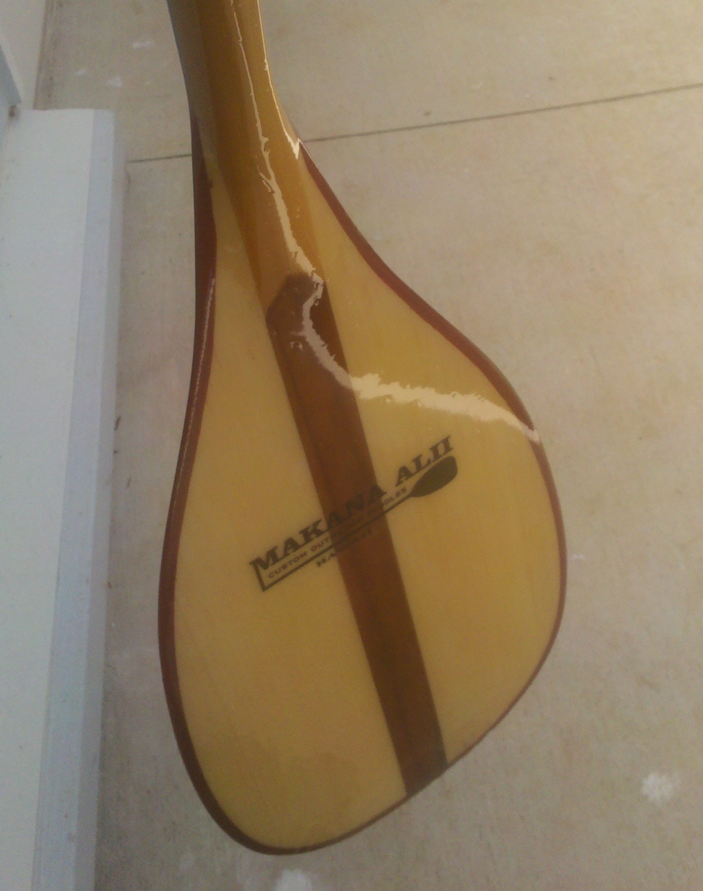 I'm wondering if anyone knows if the Makana Alli paddles are coated with varnish or an epoxy? I need to do some repair to my paddle which will include some fiber glass cloth -- the bottom edge has a split in the wood.