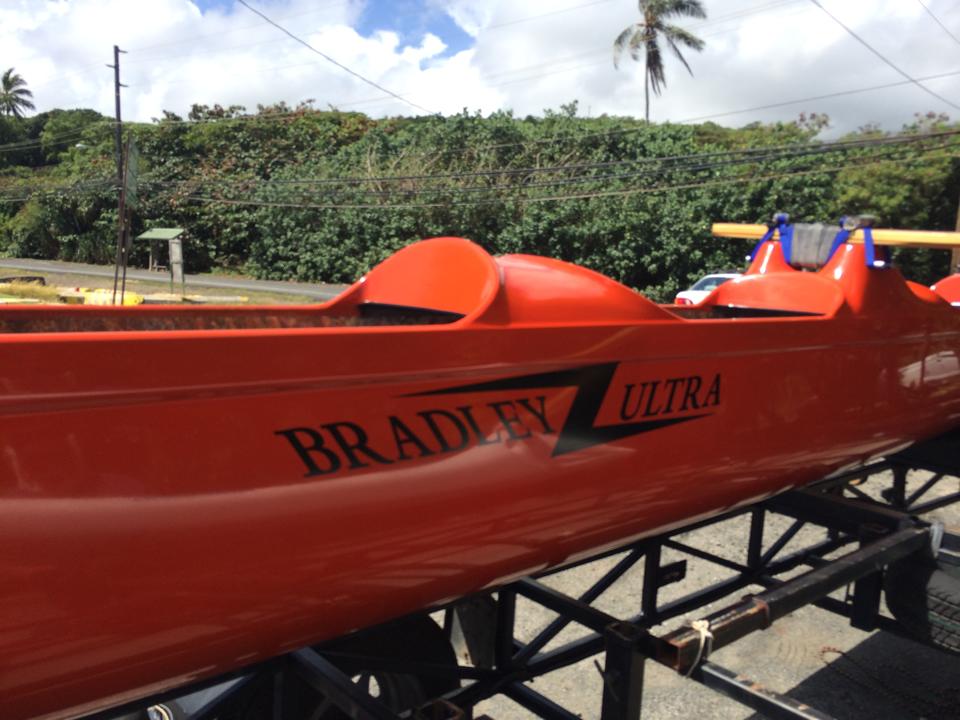 Sonny is calling it the "Bradley Ultra". Also, when you look at the profile of a manu the angle helps to lift the canoe up the swell so the canoe doesn't submarine into the next.