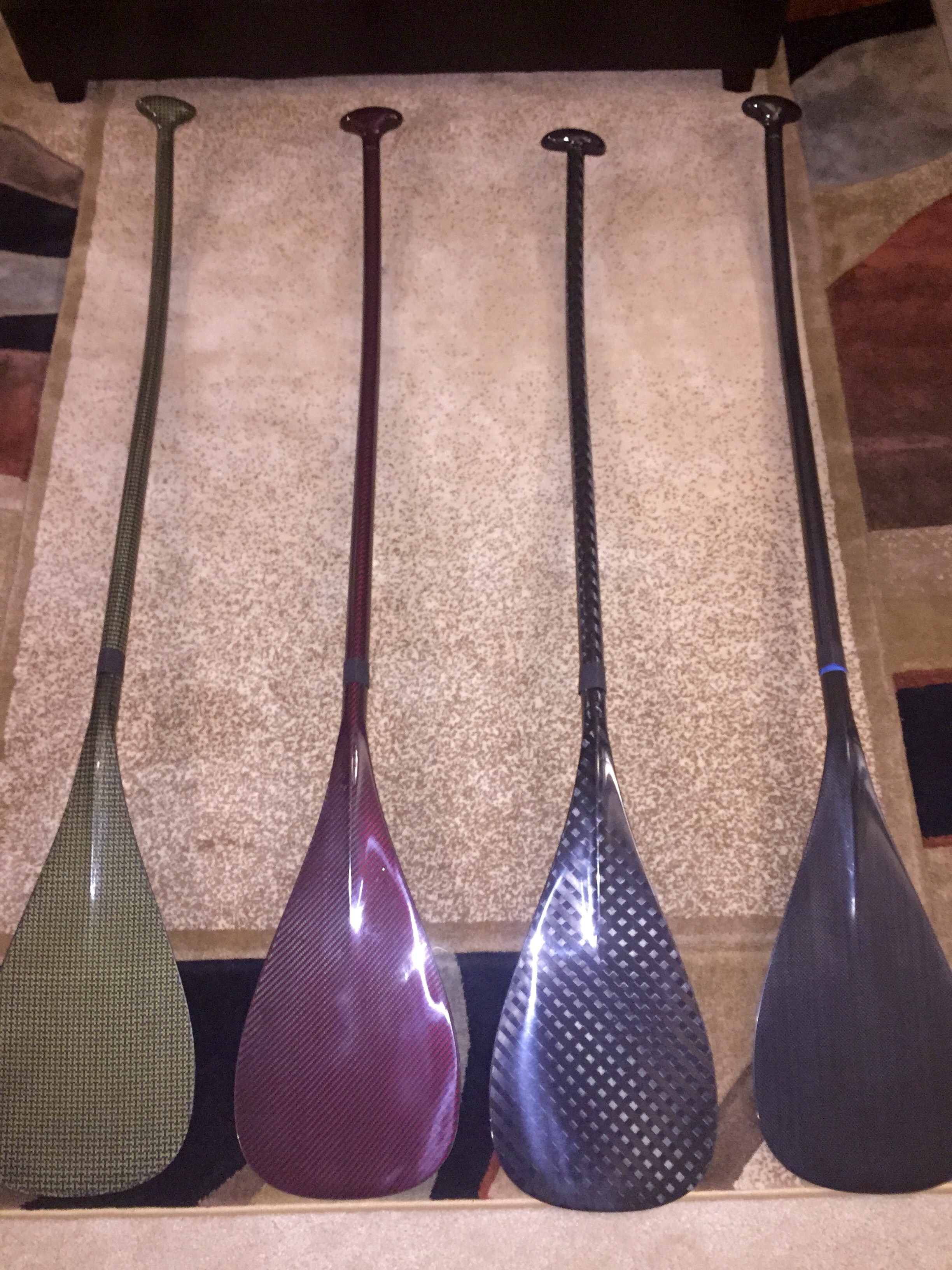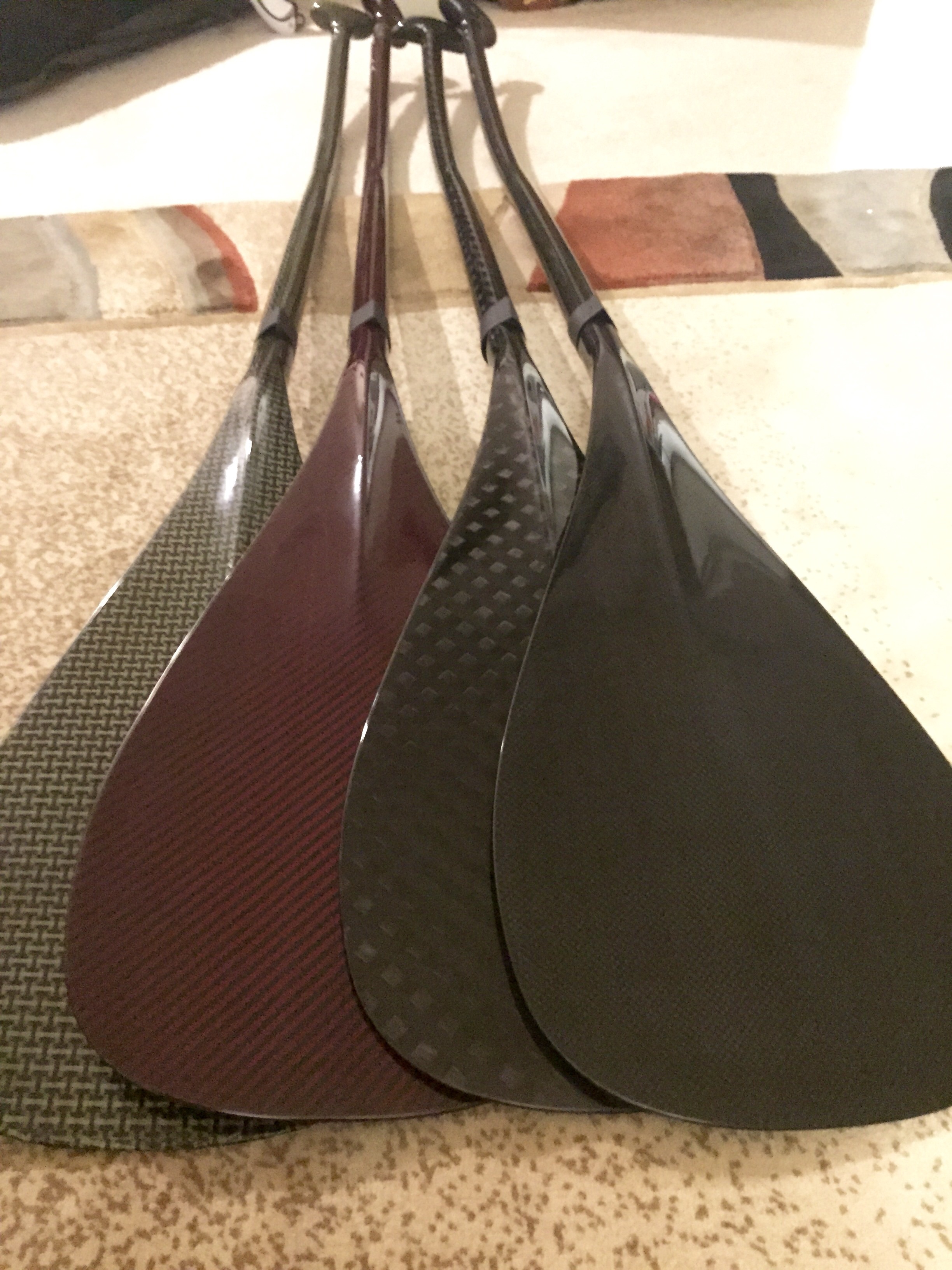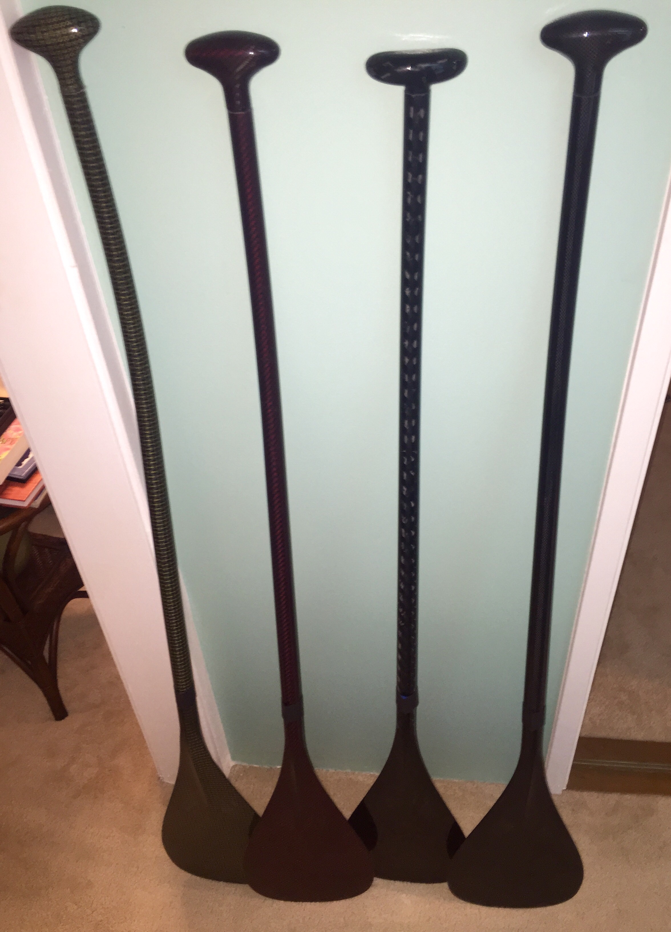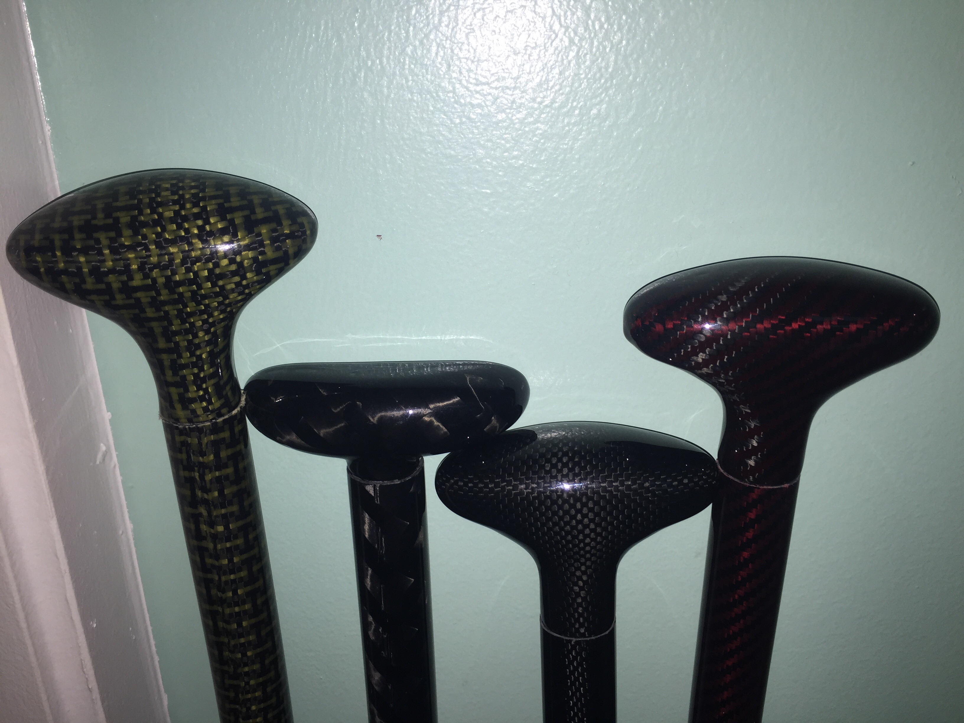 I got twenty paddles for SALE! Must go! 10 ounces, all carbon fiber and Kevlar (black/yellow, black/red and two different carbon weave. Different "T" tops, Lightests paddle available. $260 each.