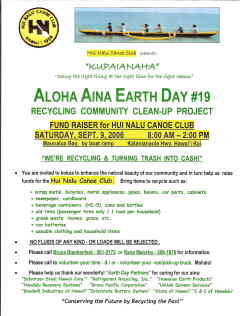 When: Saturday, Sept 9 8:00 am to 2:00 PM We're recycling & turning TRASH into CASH Where: Maunalua Bay, by boat Ramp