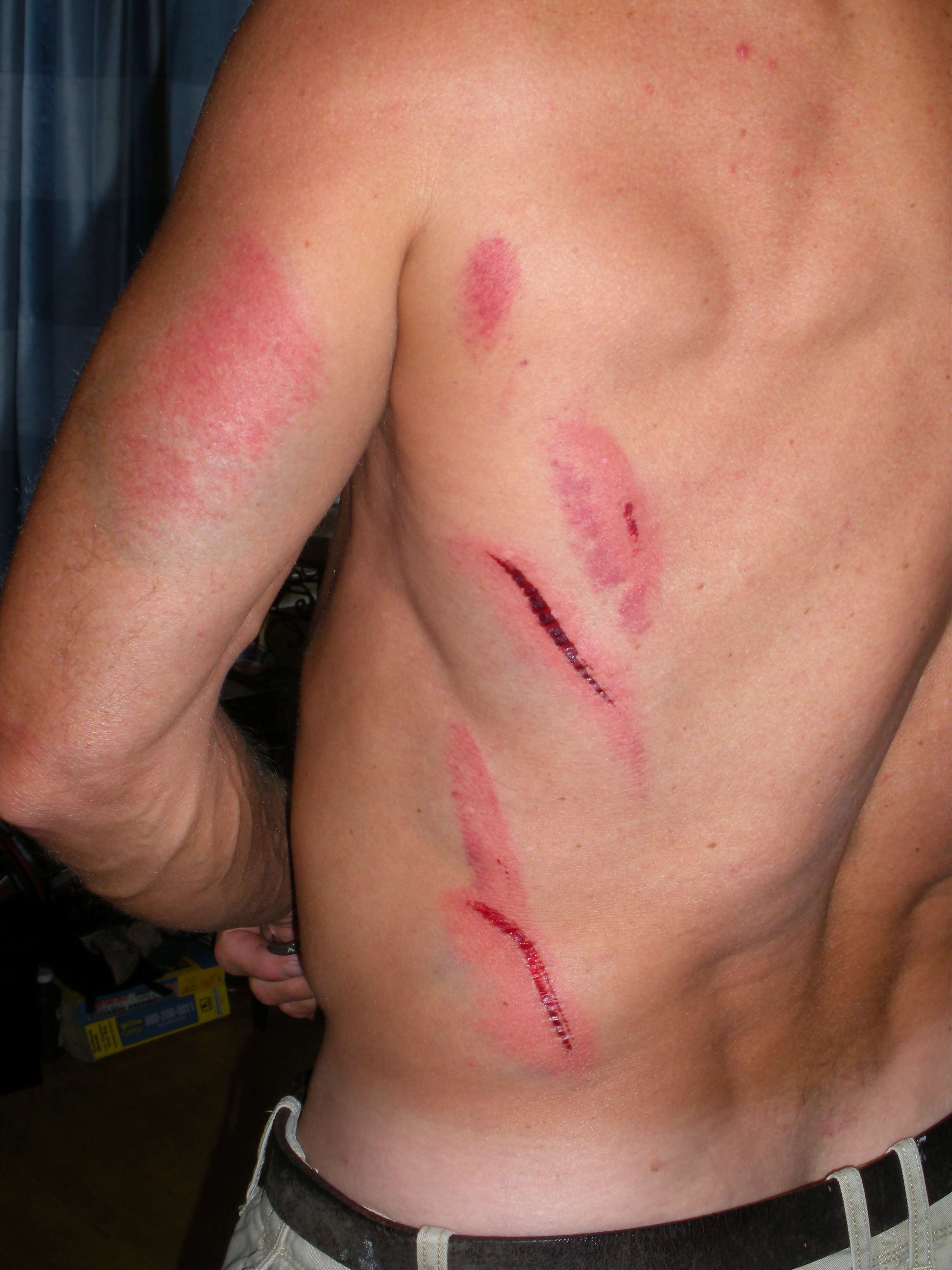 Dude, thats gnarly but now that youre safe its kinda bad-ass. You should make that youre new avatar.....and Im with poops, go out and show the girls. Tell 'em you were mauled by a shark but you fought it off.