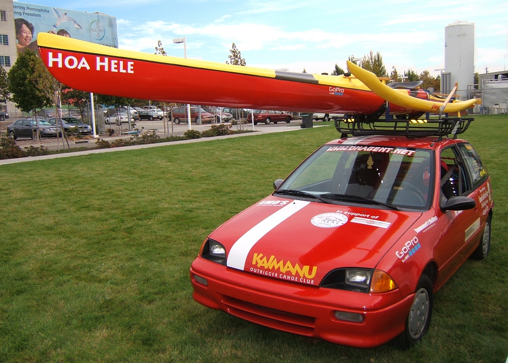 I plan on taking this canoe with me as I drive from San Francisco, California to Sydney, Australia to raise money and awareness for the Hemophilia Foundations of Hawai'i and Northern California, as well as the Christina Noble Children's Foundation in Mongolia and Vietnam. Our route will take us through 25 countries and I'll paddle this OC-1 everywhere I can to promote the sport and spread Aloha to the world. Starting in San Francisco, we'll drive through the US and Canada to New York, where the canoe and car will be placed into a container to be shipped to Southampton in the UK. I'll paddle alongside rowers in Cambridge before driving through Europe where I plan to paddle the canoe anywhere I can. In Istanbul, I plan to paddle across the Bosporus and when I reach Azerbaijan I'll paddle in the Caspian. I'll try to paddle the OC-1 in lakes in Mongolia and Russia and Indonesia as I make my way to Australia and Sydney to paddle near the Great Opera House before shipping the car and canoe back to the start in San Francisco.