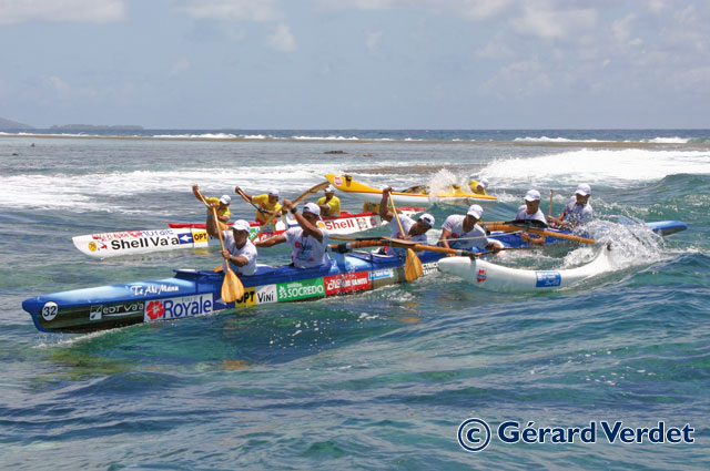 Look at how intense was the battle between Shell and EDT during the first leg of Hawaiki Nui 2008. This pic was taken at Te Ava Piti pass in Raiatea, after 40 km of channel crossing ! You can see how bad each team wants to win...