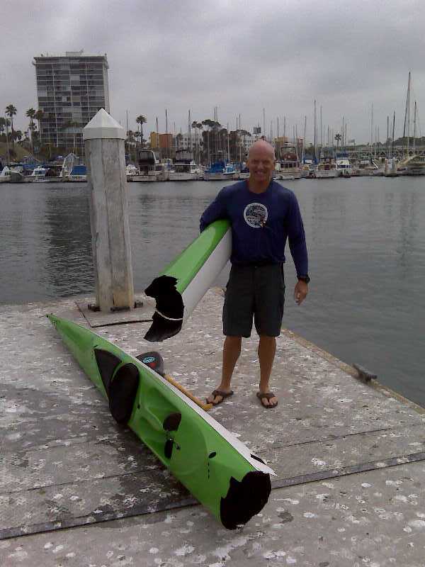 I'm not absolutely sure, but I believe he was surfing the left hand jetty coming into Oceanside harbor and cut it just a bit too close. There have been a couple of canoes eaten there including an OC6.