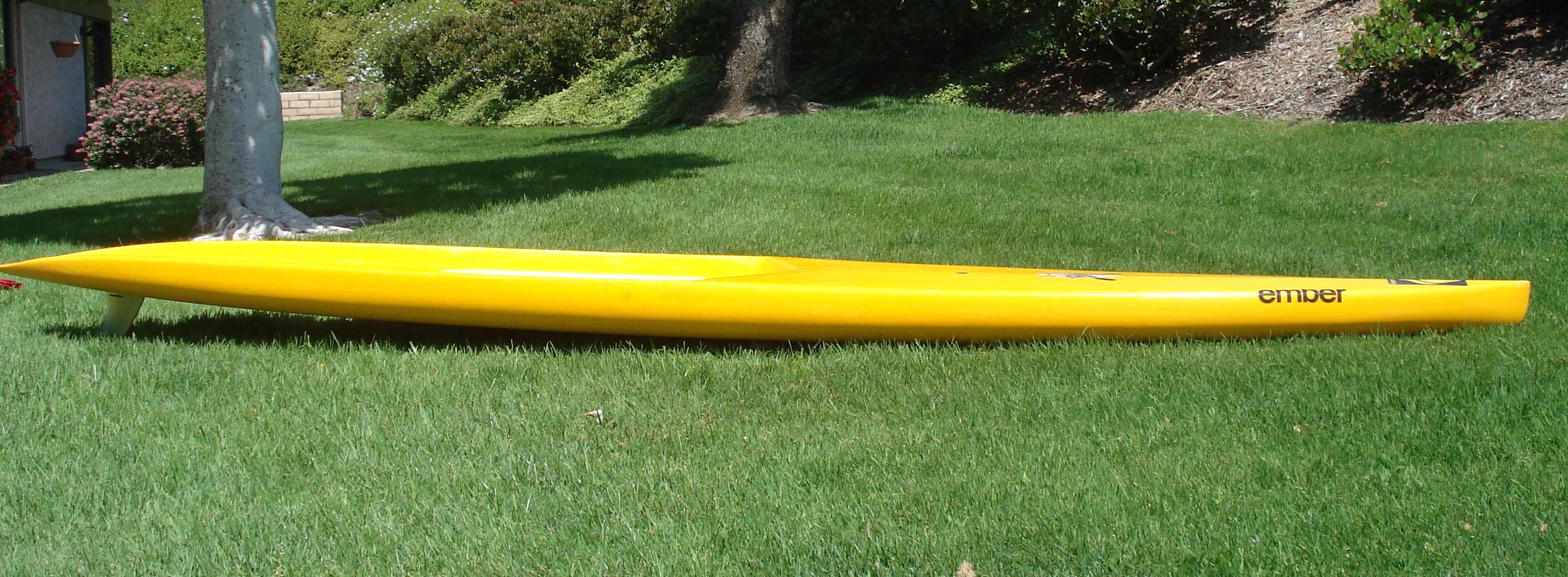 Stand Up Paddle Board - Custom shaped by Ron House. This board is very light and super fast. Great design for all conditions and excels in calmer ocean or flat water conditions. It has a center fin box to be used as a keel when more stability is required. Races great and glides well. Includes 9" O'fish'l fin.