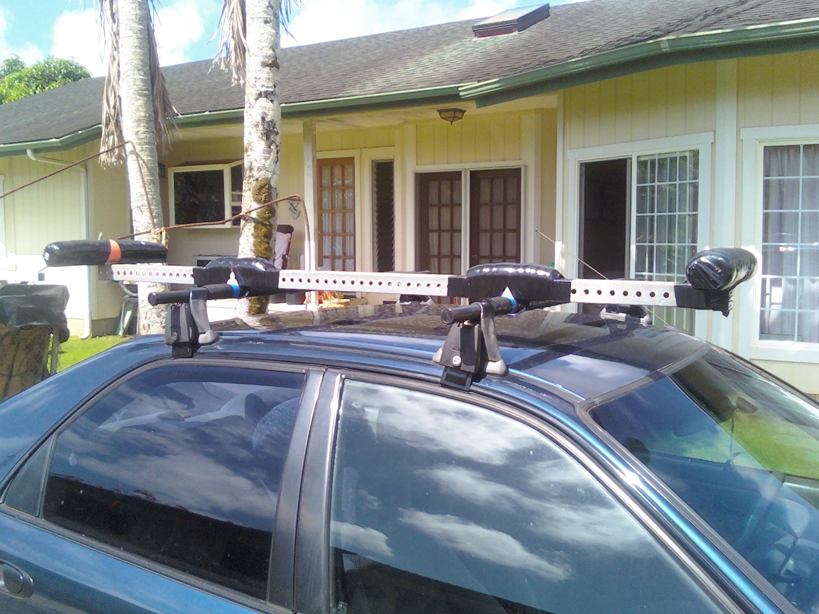 Mahalos for everyone's input on "how to haul your OC1" Here is my Okole Rigging System 6ft bar, stainless hardware(U- bolts), fiberglass unistrut bars, foam floatie pads, black electrical tape & 6pak Corona total cost $25.00!