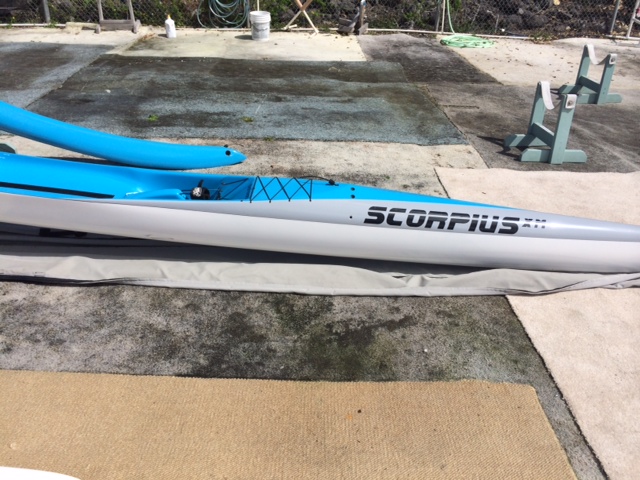 Clear Maui built Scorpius XM (no extension). Light and water tight, still in excellent condition, picture taken today (not a photo of the canoe a year ago). $3200 OBO, will negotiate